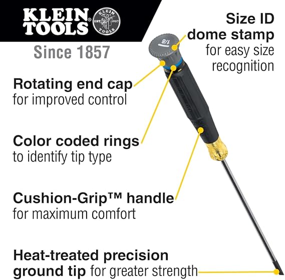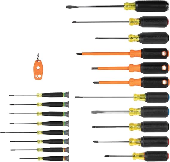 Klein Tools 85820 20-Piece Screwdriver Set, 8 Precision, 7 Standard Drivers with Color-Coded Handles, 3 Insulated Screwdrivers, 1 Demolition Driver, and Magnetizer